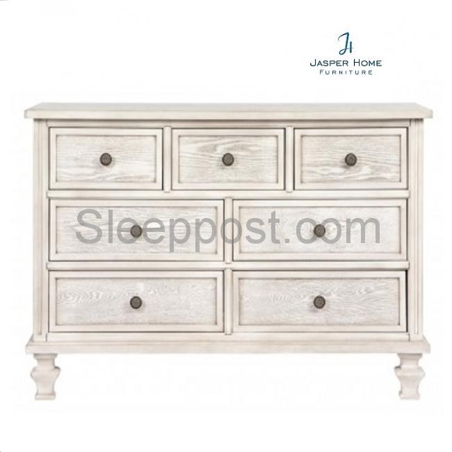 W 162cm x D45cm x H82cm 7 drawers and All Wood Solid material with plywood Finish: UV Finishing Knob Material: Metal Brand : JASPER HOME Available in Antique Cream Estimated Lead time: 4 Days when instock