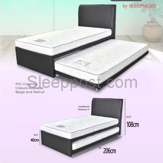 Full Set : 1)Sleep Deluxe High Density Foam Mattress(6inches) 2)Open Divan Base 3)Pull Out Mattress(6inches) 4)Headboard 5)Pull Out Bed Firmness: 6/10 (Firm) Delivery Lead Time : 3 - 6 Working Days Mattress in 5 Years Warranty FREE Delivery & FREE Installation