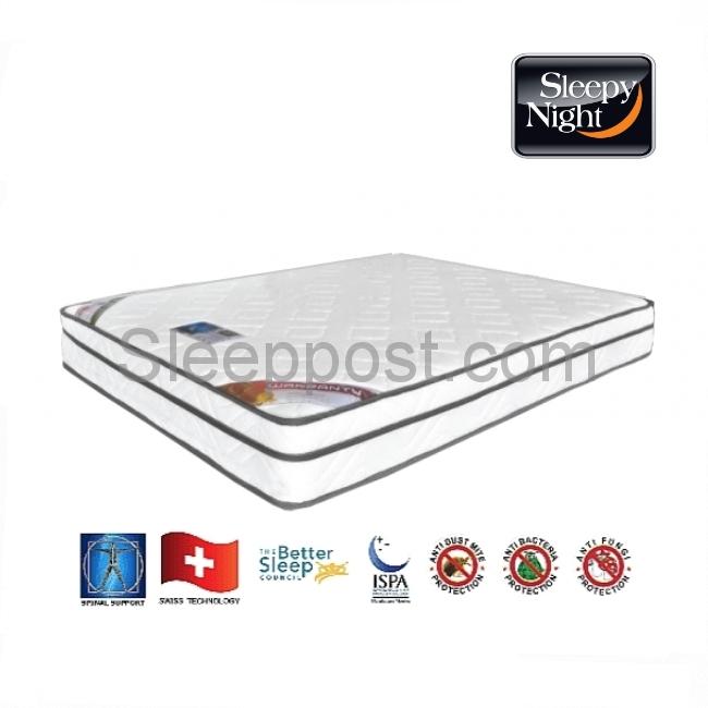 Brand: Sleepy Night Comfort Layer Padding: Euro Top Fabric Ticking : Knitted Fabric Comfort Layer: High Density Support Layer Spring Foundation: Box Spring System Treatment: Anti Dustmite / Anti Fungi Comfort Level: Medium Firm