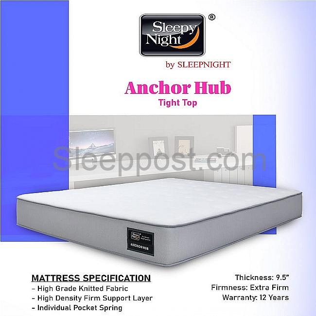Anchor Bliss Mattress using Pocketed Spring Sleep System Aloe Vera knitted Fabric ,Anti-Dust Mite ,Anti Fungi ,Anti Bacteria Height 25cm(9.5 inches) Firmness Scale:7/10(Extra Firm) 12 years manufacturer warranty Lead Time : 3 > 6 Working Days
